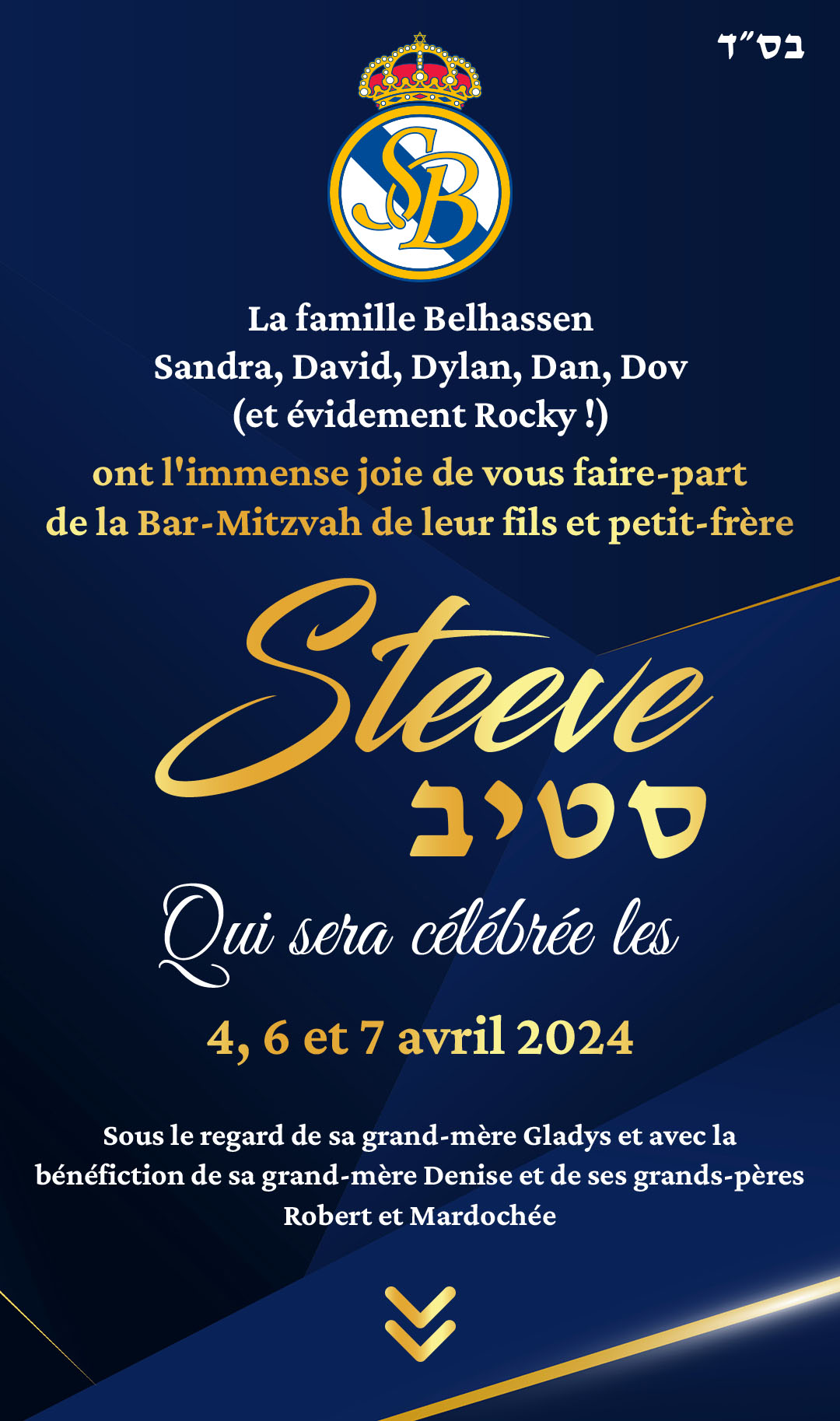 Nous serons heureux de partager sa première mise des téfilinesJeudi 4 avril 2024à 8h30 préciseà la synagogue Beth Gabriel2 rue de la Pierre Feuillère 93130 Noisy-le-Sec